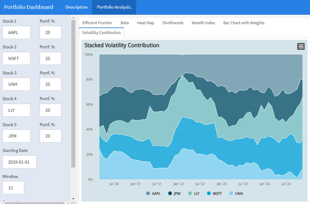 - Considering user's selected allocation, display time-weighted asset's volatility contribution to the portfolio